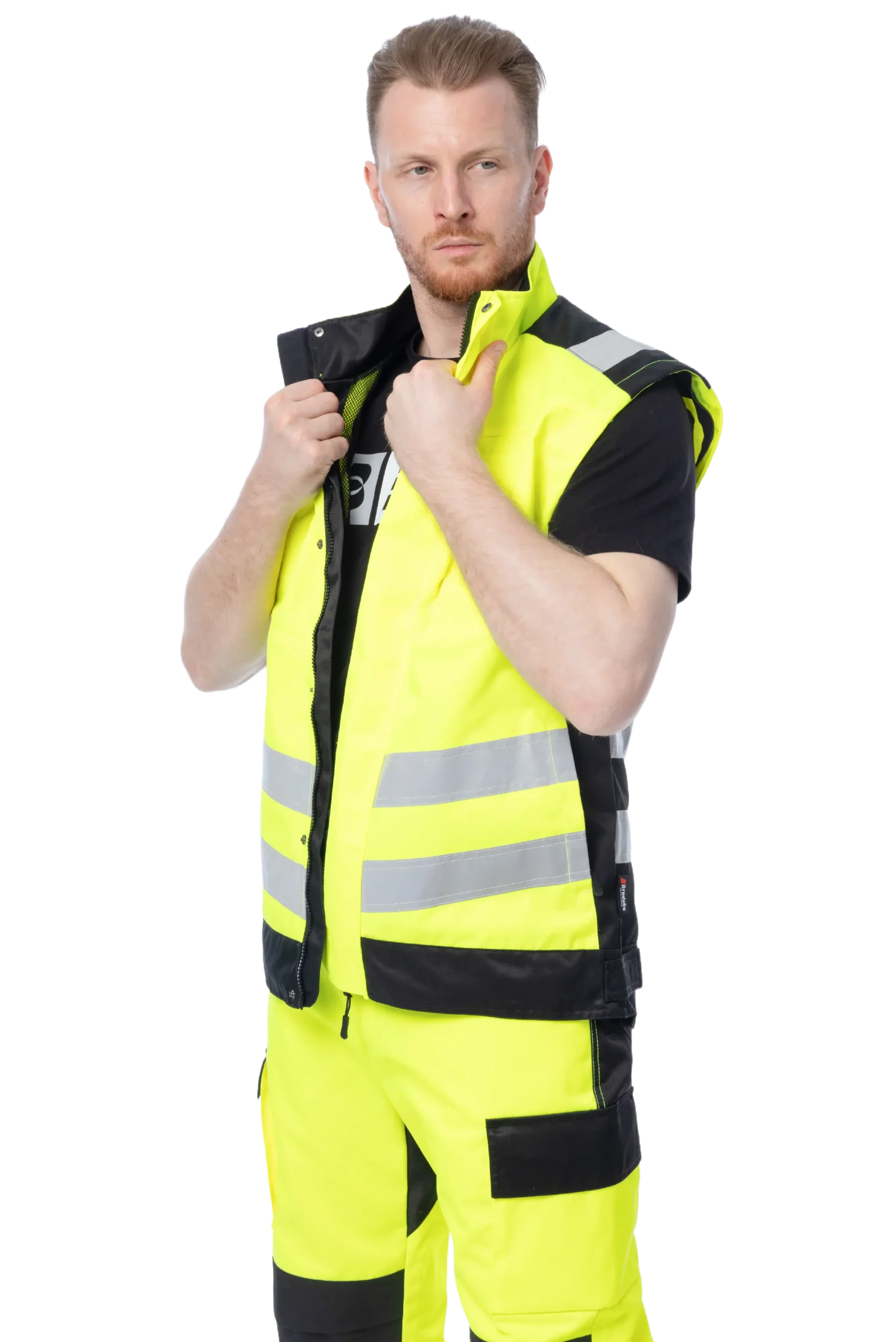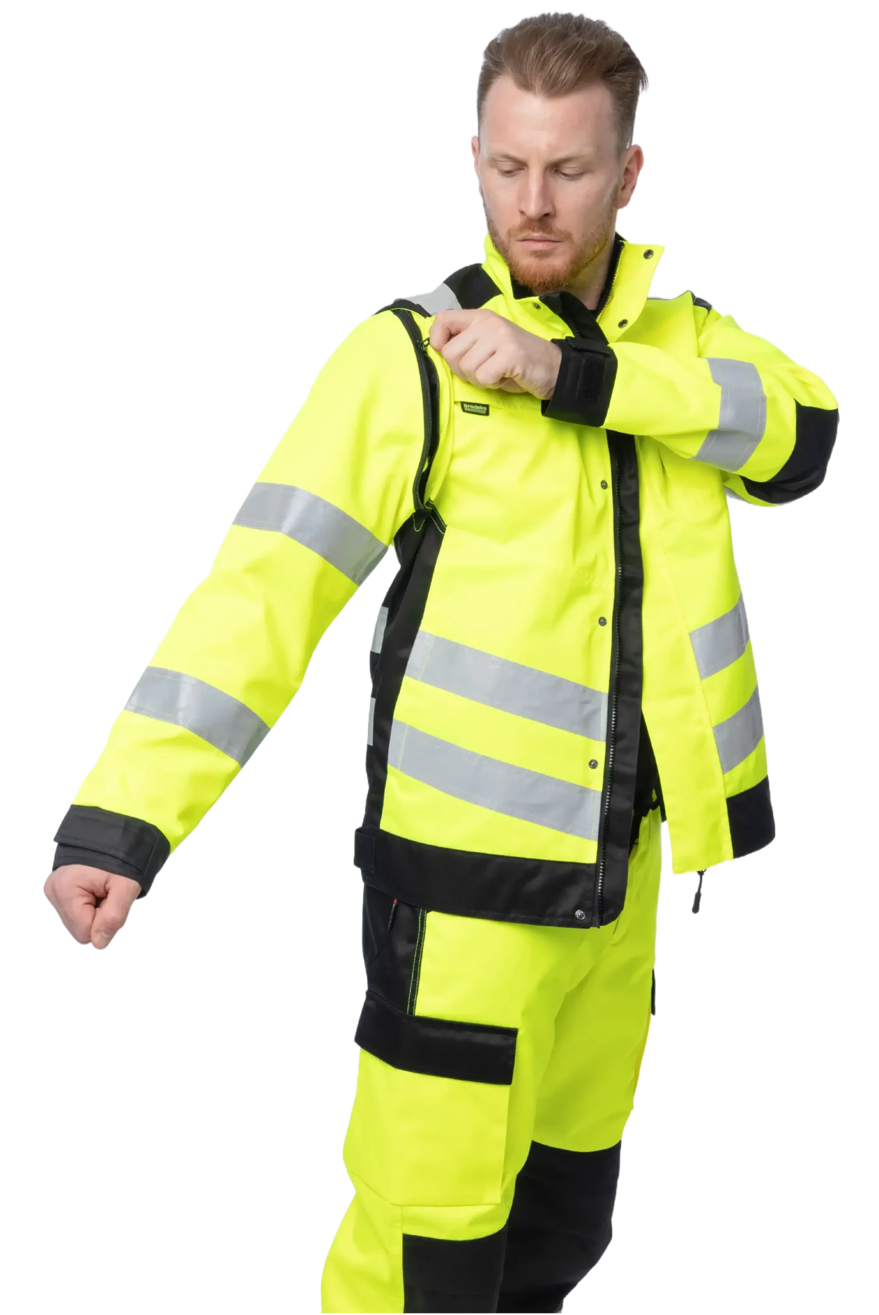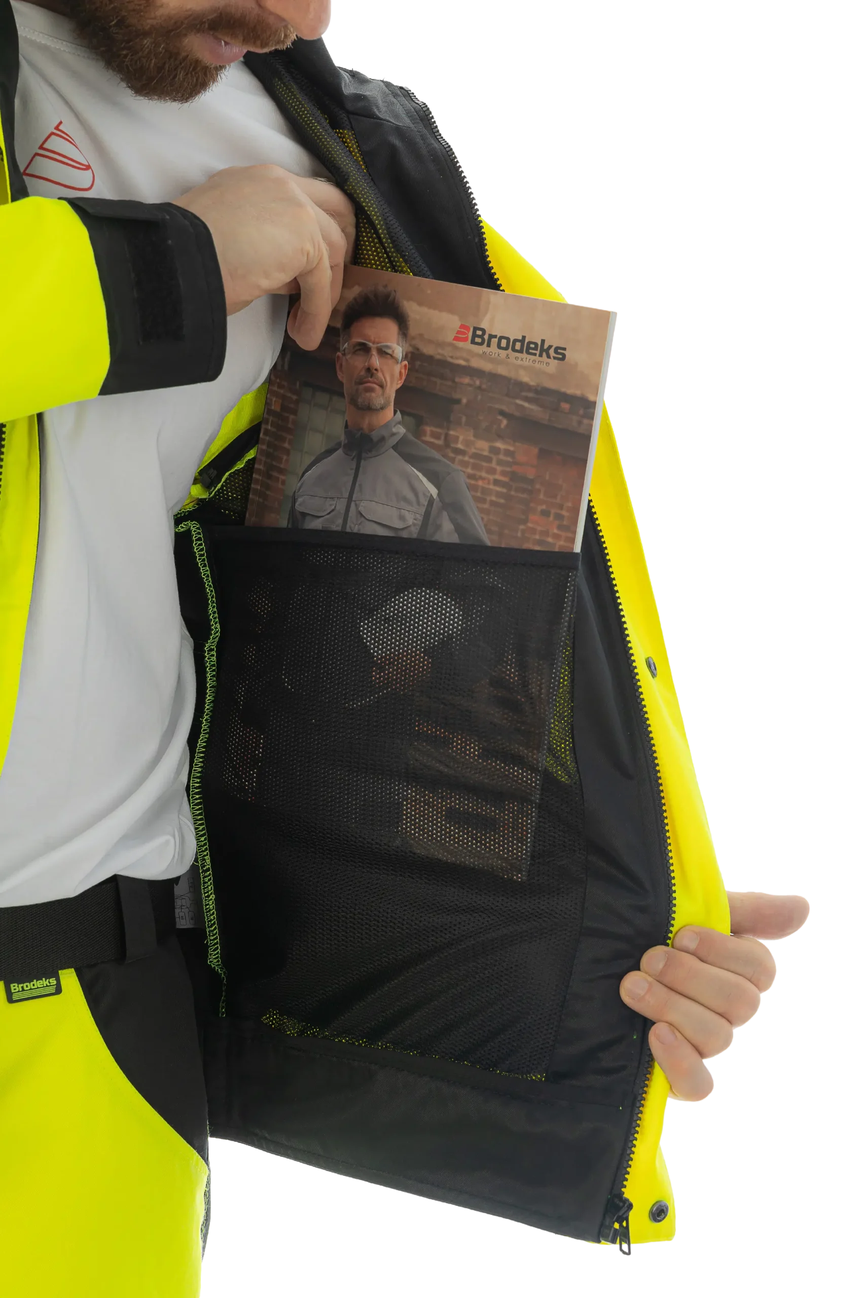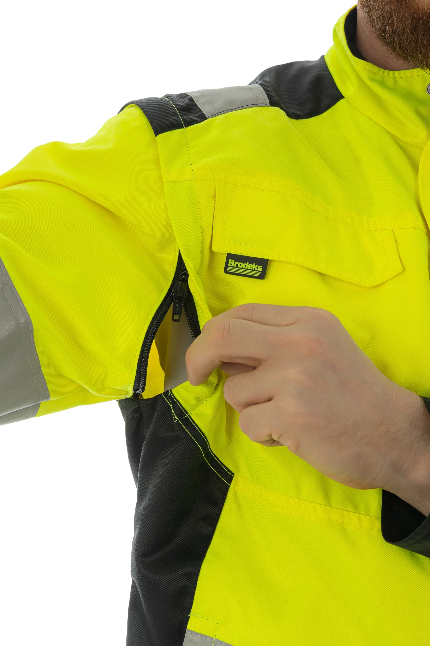 Сигнальная куртка Brodeks KS 225 — удобная и практичная рабочая куртка 2 класса видимости с защитой от воды, масел, смол, брызг кислот и щелочей. Уникальная особенность модели – рукава на молнии можно снять и использовать изделие как сигнальный жилет. Куртка подойдёт тем специалистам, кто работает летом на улице или в помещениях в условиях сильных загрязнений и где важна повышенная заметность.