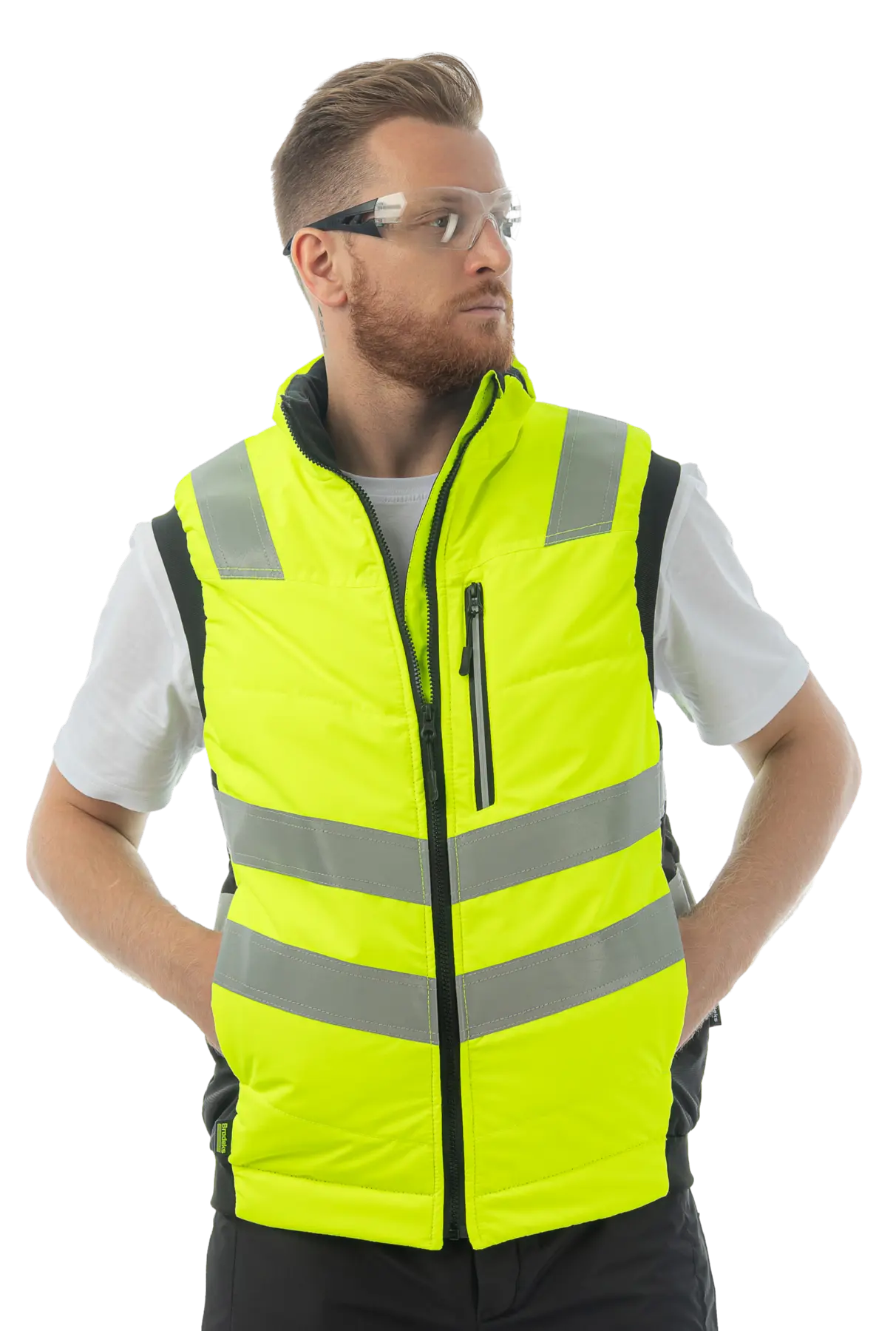 Сигнальный жилет Brodeks KW 111 – утеплённый жилет 2 класса видимости для работы на улице и в прохладных помещениях, когда необходима повышенная заметность. Сшит из мембранной ткани с водоотталкивающей отделкой, утеплён компактным материалом с гипоаллергенными свойствами.