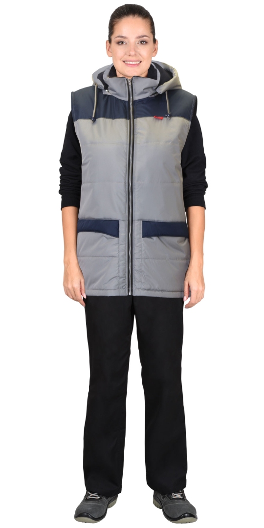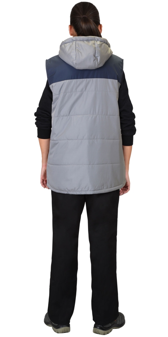 Жилет «СИРИУС-ЕВРОНИКА» утепленный, св.серый с т. синим, с капюшоном (на подкладке флис)